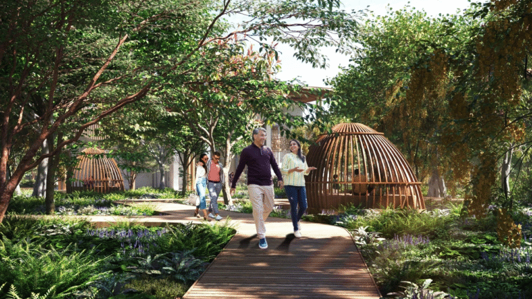 A grand clubhouse, swimming pool, landscaped gardens, business lounge, gym, play zones, and smart home features.